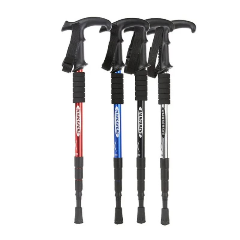 Bastónes para senderismo o muleta de aluminio 6061 con mango tipo T y doble uso, que es plegable en cuatro secciones.