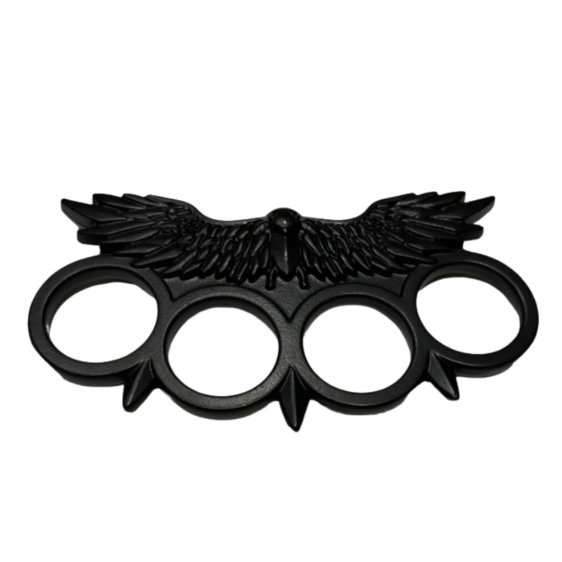 Manopla de acero , con un diseño de HALCÓN BLACK. Con un diámetro de agujeros de 2.3 cm y 4 agujeros en total, esta manopla es ideal para defensa personal. Su material de acero y su espesor de 7 mm garantizan resistencia y durabilidad. Además, cuenta con un diseño ergonómico y puntas Rompe vidrio para una mayor efectividad en su uso.