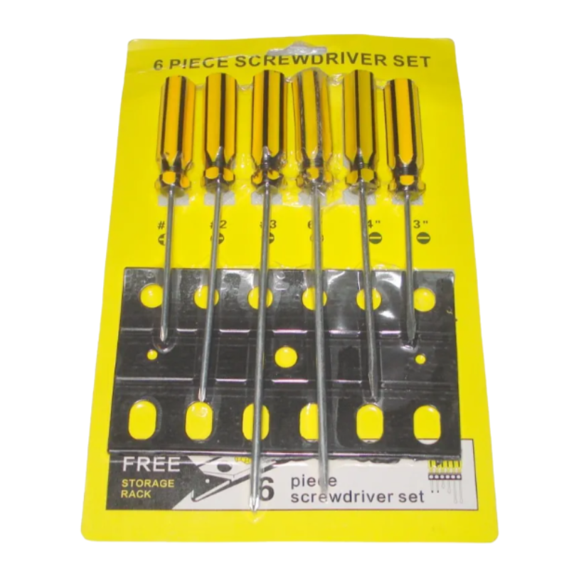 Set x 6 destornilladores ( 3 planos y 3 phillips ) + soporte para pared